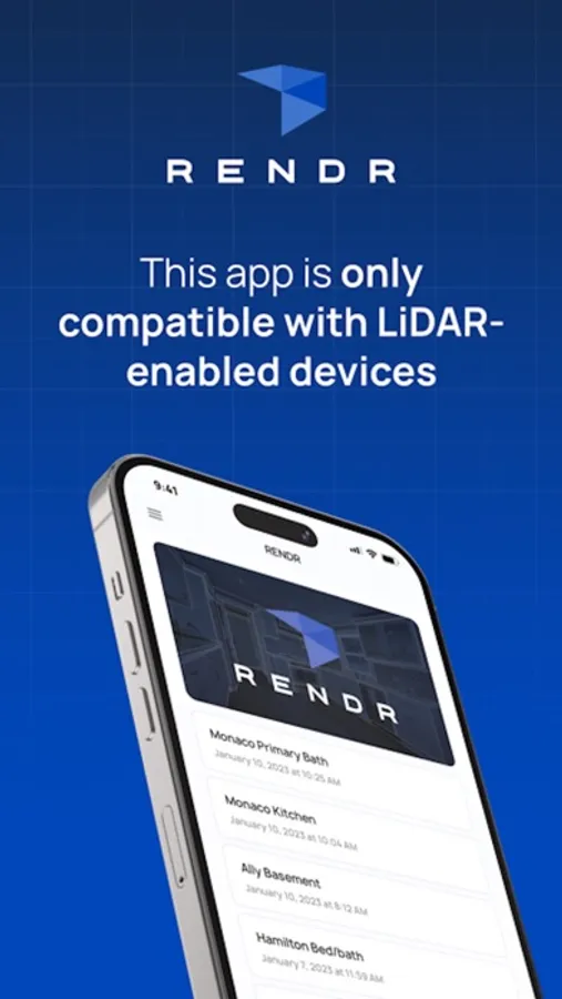 RENDR mobile device measuring currently requires a LiDAR capable device. For more information on device support, visit https://rendr.com/supported-devices