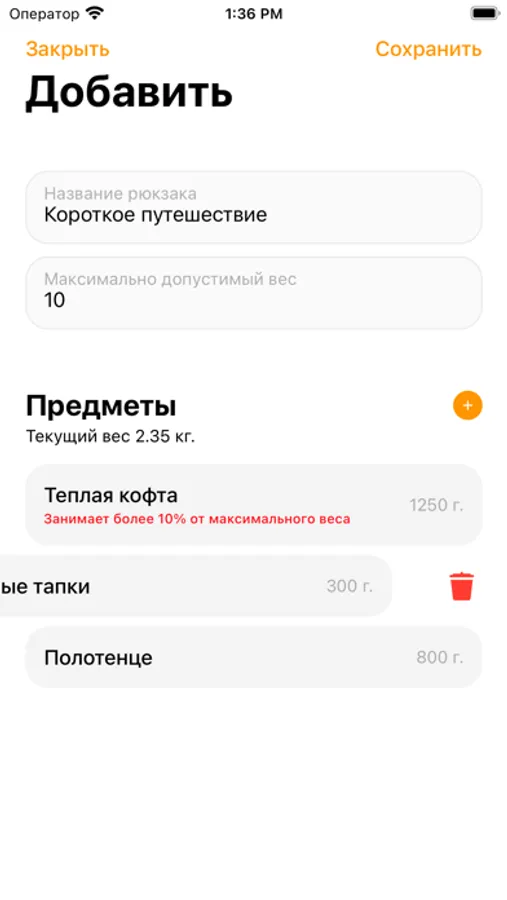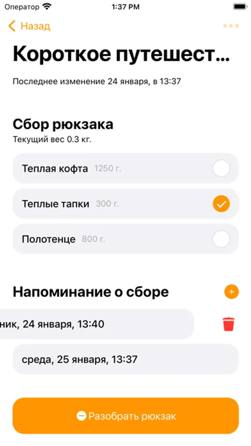 Бэкпэк поможет вам сэкономить время и собрать рюкзак в любую поездку. Вы можете составить список вещей в любую поездку (на тренировку, на работу, в путешествие).