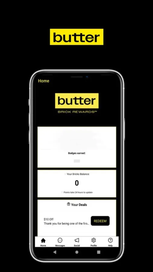 As a butter brick rewards member. you will be able to earn and track points with every purchase. Not a butter brick rewards member yet? Easily signup in our app!