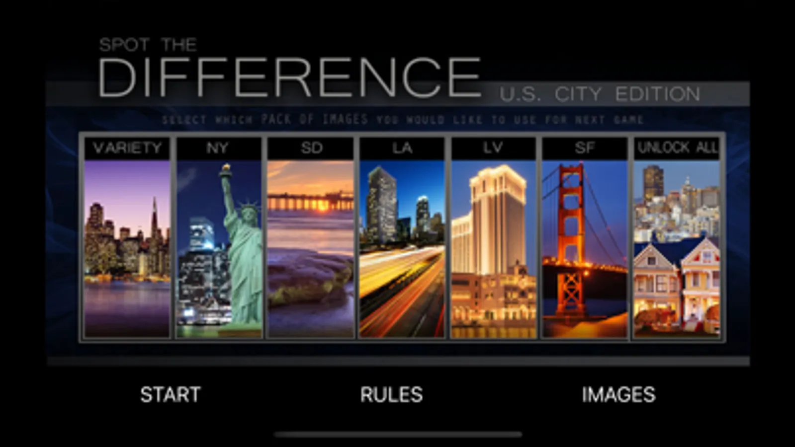 Play Spot the Difference! Look at two images side-by-side and find five differences before time runs out. Choose from several amazing US city categories including: San Diego, Las Vegas, New York City, San Fransisco, and LA. This game has over 100 amazing images for you to enjoy.