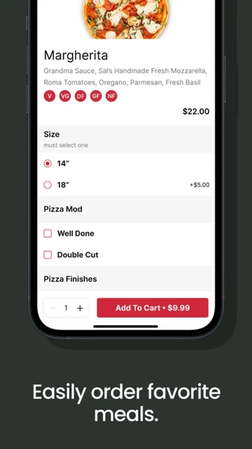 - Fast re-ordering of your favorite Sal’s Italian food items