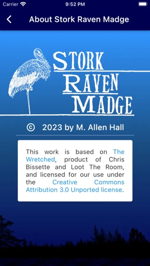 Stork Raven Madge is a solo-journaling game in the style of one-player tabletop role-playing games. It is based on the Wretched and Alone SRD by Chris Bissette. Your character is on a research trip to an island in the Baltic Sea when they are cut off from their contact on the mainland. You will record your experiences in a journal as you struggle to survive on the island and complete your research project while you wait to be rescued. The game will present you with prompts in the form of events and questions to guide your role-playing experience.