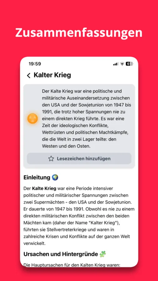 • Suche Lernzettel zu jedem Thema, Begriff oder auch zu einer Fragestellung