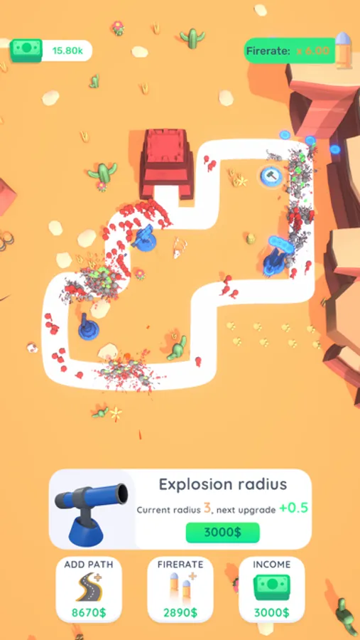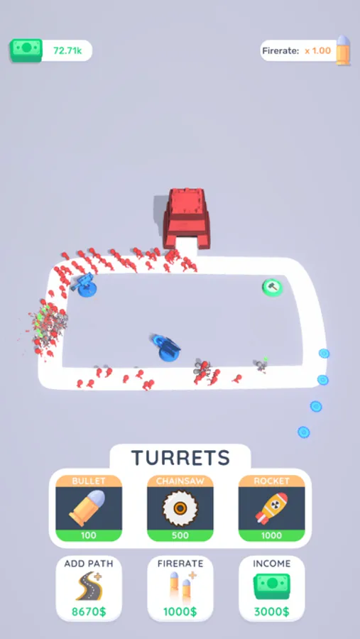 "Towers vs Stickmen 3D" is an action-packed tower defense game where players must strategically place towers to eliminate waves of stickmen enemies. The stickmen will continuously move in a circular loop, but can never reach an endpoint as they are going in a loop. Players can upgrade their towers' fire rate, acquire new tower types, and earn income from defeated stickmen to aid in their defense. The game's objective is to maintain a high score by eliminating as many stickmen as possible. With challenging gameplay and endless hours of entertainment, "Towers vs Stickmen 3D" is a must-have for any tower defense fan!