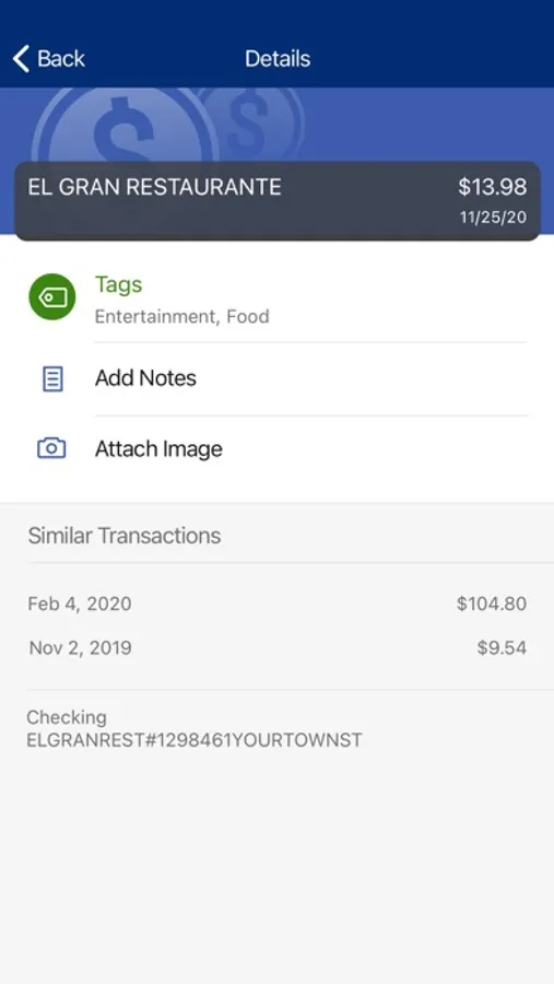 • Keep your transactions organized by allowing you to add tags, notes and photos of receipts and checks.