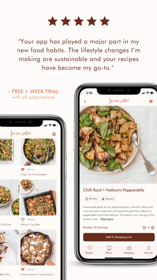 4x best selling authors, Two Raw Sisters, Margo and Rosa, discovered the power of plants, and the beneficial impact they have on overall health and wellbeing after overcoming chronic fatigue, eating disorders and endometriosis. To the sisters, the term ‘Raw’ simply reflects utilising minimally processed, cost-effective ingredients you’re familiar with. We don’t follow diets inside this app, we simply start with plants and make them taste really good.
