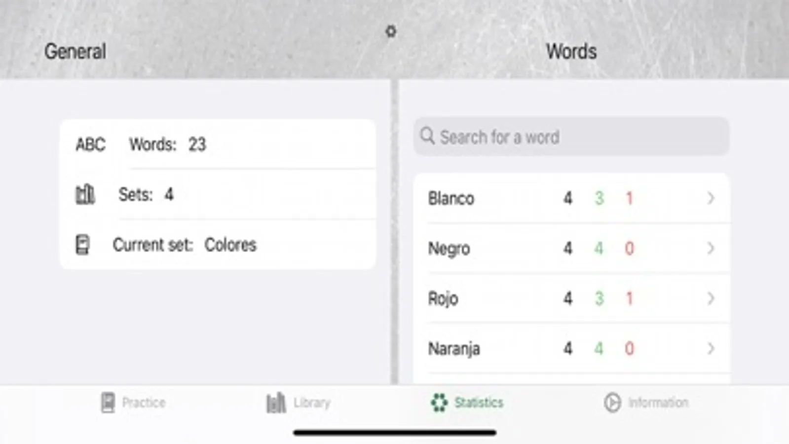App created for Spanish/English students to help them to memorize words and phrases. You can create your own set of words about the topic you need to learn or memorize. You can track your success using the statistics about each word. It's possible to use a timer or disable it. This app is specially created with only one goal: Help students to focus in what they need to memorize. Zero ads. Zero purchases. Zero requests about personal information.... Just tap and swipe is all that you need to do for learning.