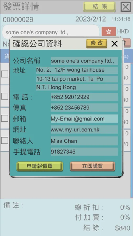 應用範例: 公司名稱 : CONNIE |密 碼 : demo
