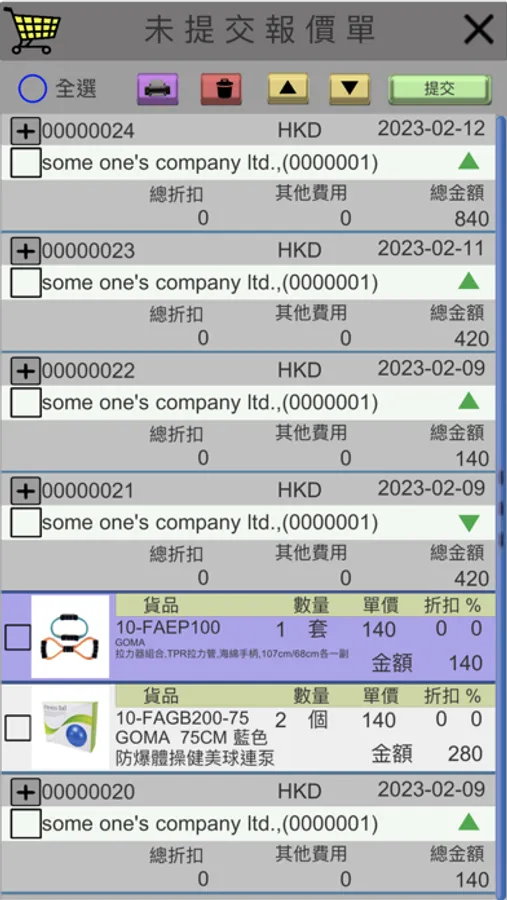 3.記錄報價,加入訂單,刪除,還原,列印,儲存歷史,歷史中查看,拷貝。