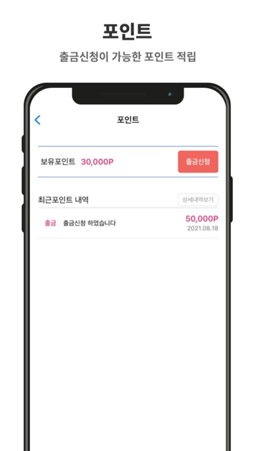 - 완료 조건 달성 후 출금신청 가능한 포인트 지급