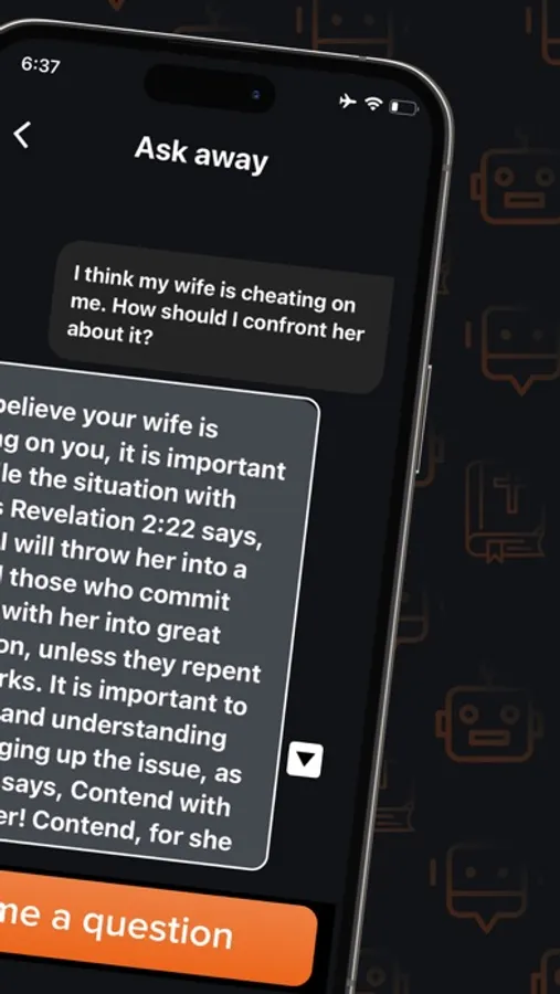 In the app, you can chat with an AI that knows the entire bible text. You can ask them questions or simply explain your situation and it will reply with words of wisdom.