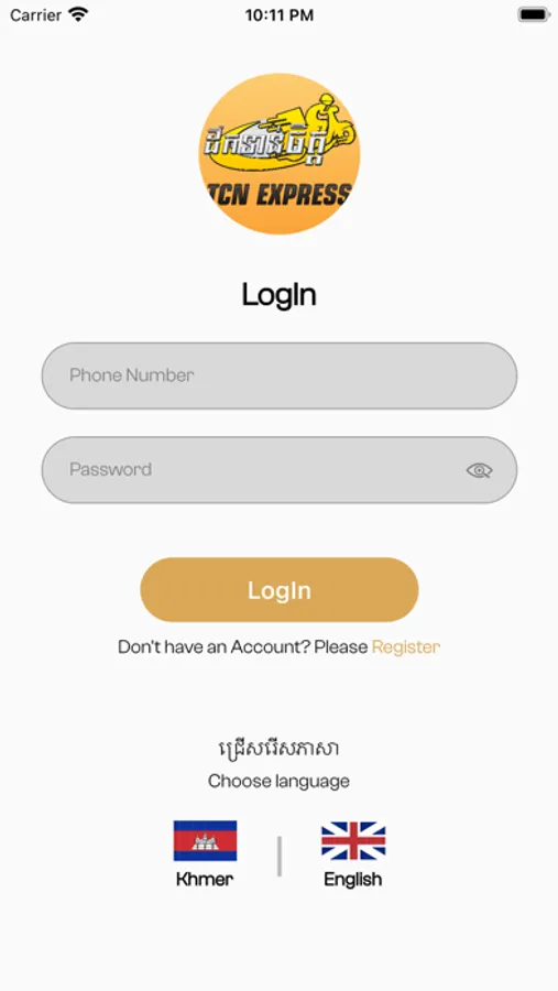 a mobile Application that to user can register/login with Phone number and booking request delivery to customer or request delivery to pick up.
