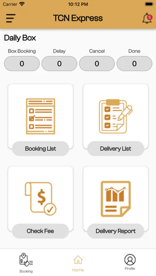 1. Booking List: for Request delivery to pick up box deliver