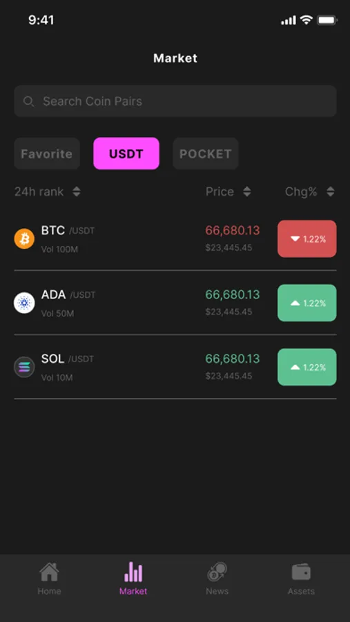 The application provides real-time exchange rates for the cryptocurrencies it supports.
