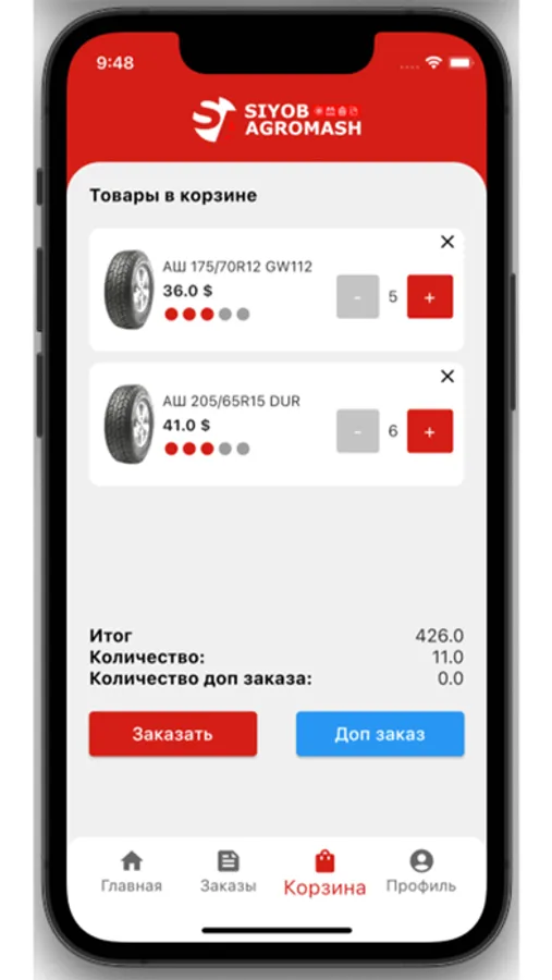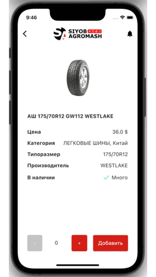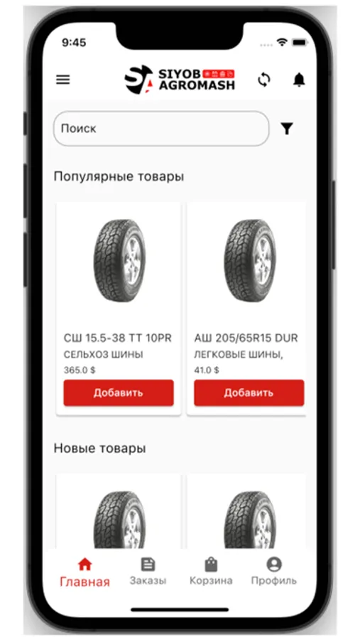 SiyobAgromash - приложение предназначенное для покупки шин и авто запчастей в режиме онлайн.