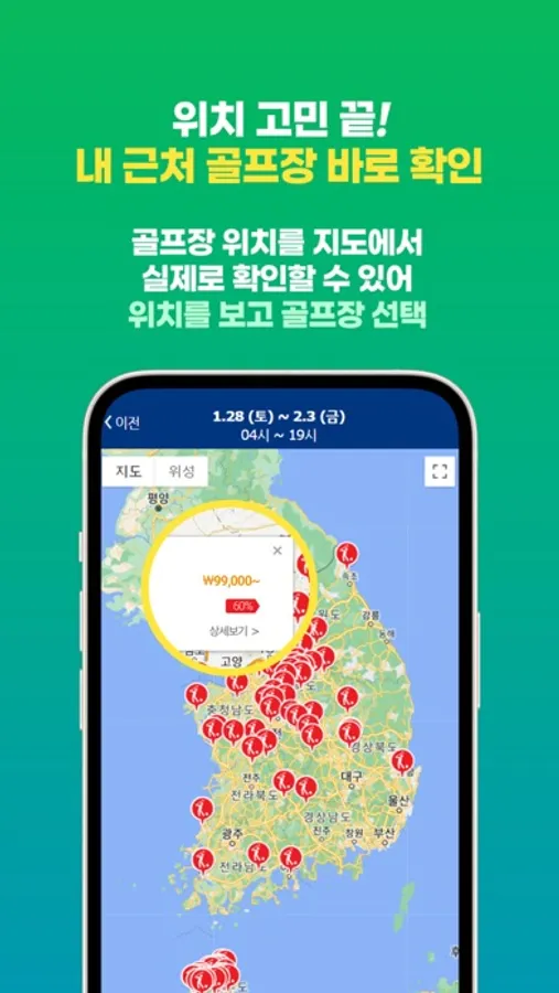 ▶ 고객의 현재 위치를 기반으로 한 인근 골프장 검색 기능