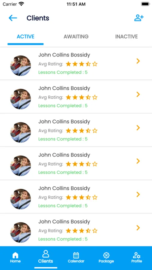 Keep track of your clients and students with our easy-to-use list management system. Store their information, including contact details and driving history, all in one place.