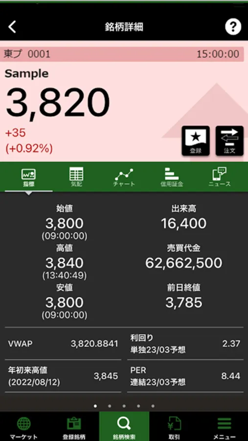 検索結果をタップすると詳細情報やチャートをご確認いただけます。