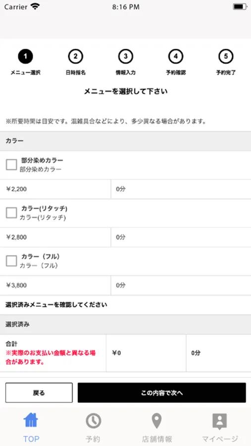 予約状況の確認やキャンセルがマイページ上から行えます。スタッフの登録が出来るので前もって担当者を登録しておけばマイページからスムーズな指名予約が可能です。
