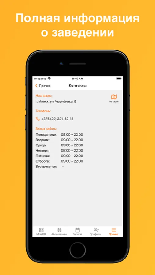 Получайте информацию о своих занятиях и абонементах, а также полную информацию о заведении.