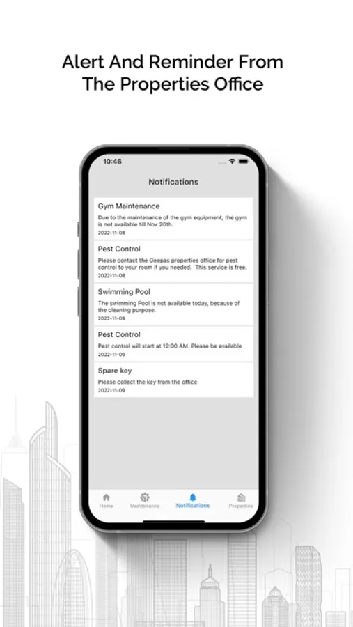 Residents can track the complete cycle of the complaints with our Geepas properties mobile app. The dashboard of the application lists registered complaints with the status for a quick reference process that helps the residents to keep track of everything on the go. The alert feature of the application notifies the residents of any updates on the registered complaints and appointments. The application has a complaint history, which lets the residents view the entire service request history along with the maintenance record. The records can be sorted and filtered based on the status of the service request. If the issue prevails, the residents get the option to reopen the complaint. Thus the application promotes a seamless communication network between the residents and the maintenance team without much hassle.