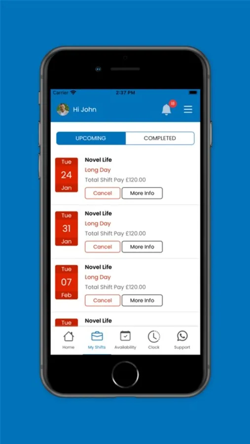 Our app helps nurses, carers and other medical staff to create an account, upload their certificates and maintain current fit to practice status. Care homes and hospitals can post shifts through the app for fast and easy notification to the allocated staff to view available vacancies and accept shifts. The app also helps the staff and employers to see their respective work history, payment history, timesheets etc.