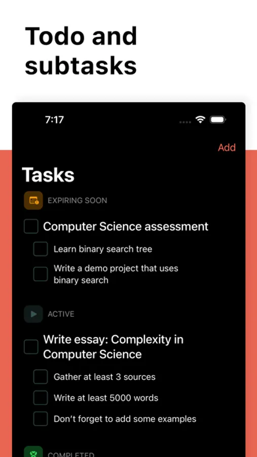 - Tasks: You can create to-do lists and reminders for individual tasks so you never forget an assignment or project deadline again. You can categorize your tasks by subject or priority and even set reminders for individual tasks to ensure that you stay on track and never miss a deadline.