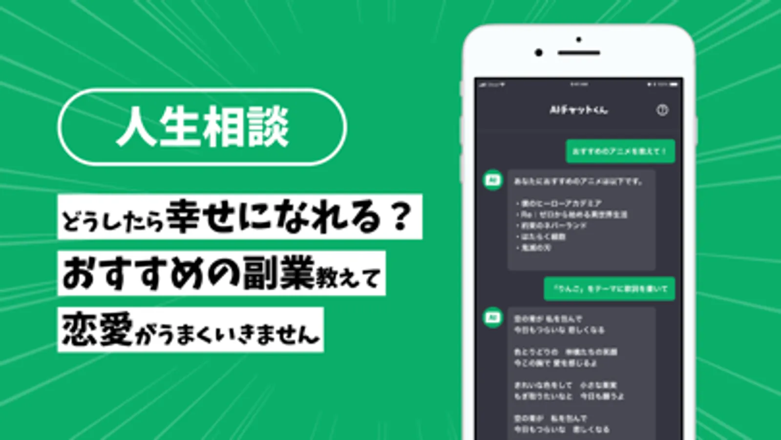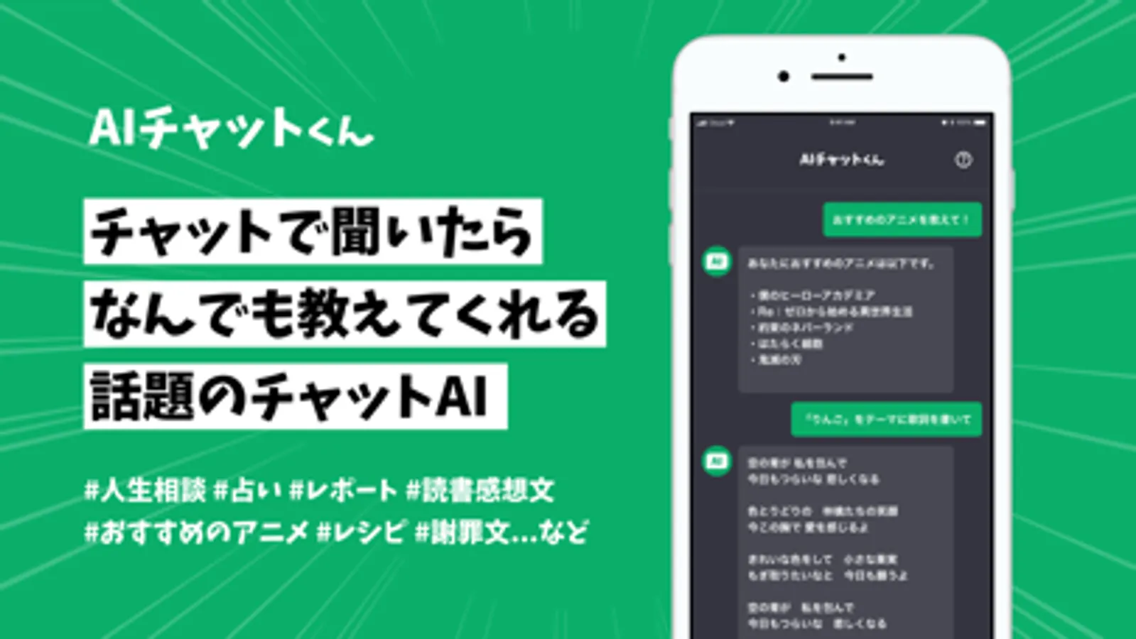 登録者数1億人を突破したChatGPTを作ったOpenAIのGPT-3.5を活用したチャットアプリです。チャットを利用することで、人工知能がどんな質問にも答えてくれます。あなただけのプライベートな空間なので、ここだけの質問や恥ずかしい質問もできます。