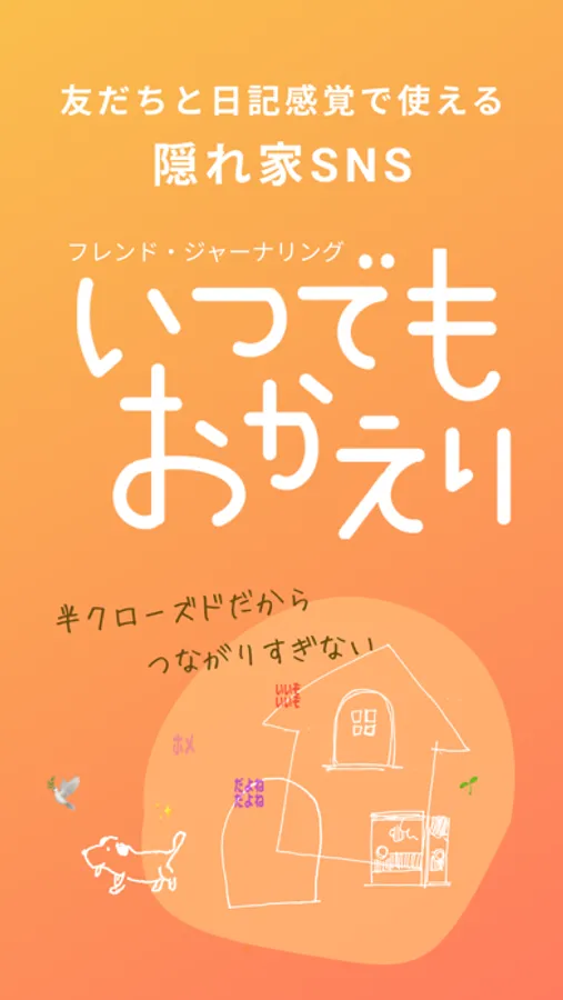 モヤモヤは生まれる、だけど吐きだす場所がない。そんな心のダムの警報音を聞きつけて「いつでもおかえり」は誕生しました。「いつおか」は、現実では言えない気持ちを安全に吐きだし、共感しあえるような、クローズドのオンラインコミュニティです。「気持ちの受け止め合い」をコンセプトに、「言いっぱなし・聞きっぱなし」などメンタルヘルスケアのチップスや福祉支援のノウハウを取り入れた、まったく新しい設計の、だけどどこか懐かしいSNS。誰かに強く否定されることなく、穏やかなつながりを保ちながら、自分の悩みを吐き出したり、誰かをそっと励ましたり。大切な気持ちを軸に、オンラインでやさしい居場所をつくりましょう。