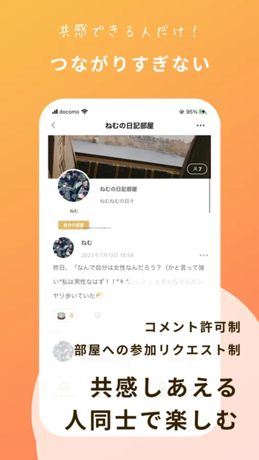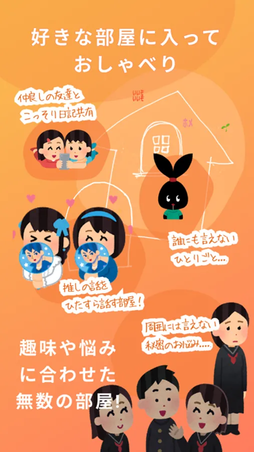 - 自分の部屋に、日々の気持ちや出来事を投稿してみましょう。