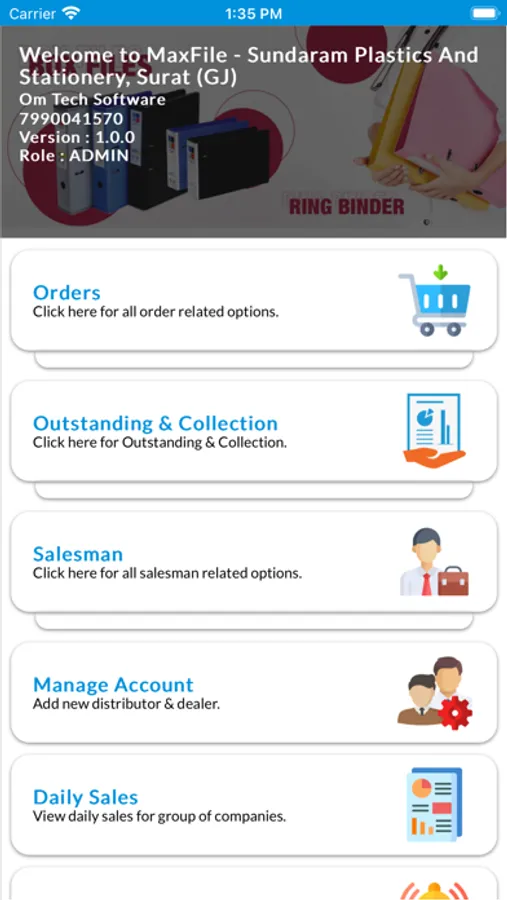 MaxFile Application is a portal for ordering office P.V.C. and P.P. files for our Distributors, Dealers and Salesmen.