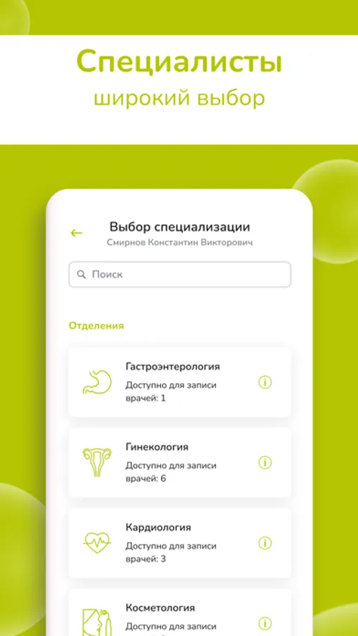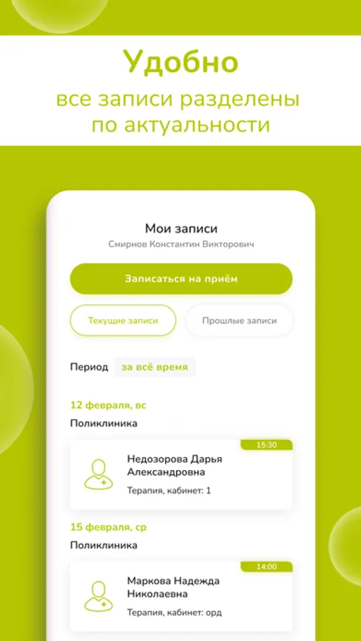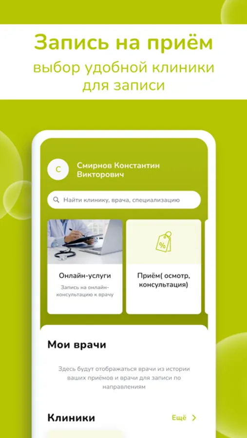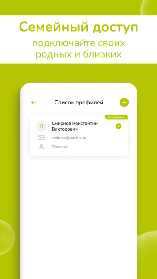 • Семейный доступ к записи нескольких пациентов с одного аккаунта