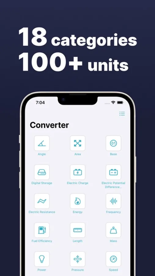 - Angle: Degrees, Radians, Grad, Arcseconds, Arcminutes, Revolutions