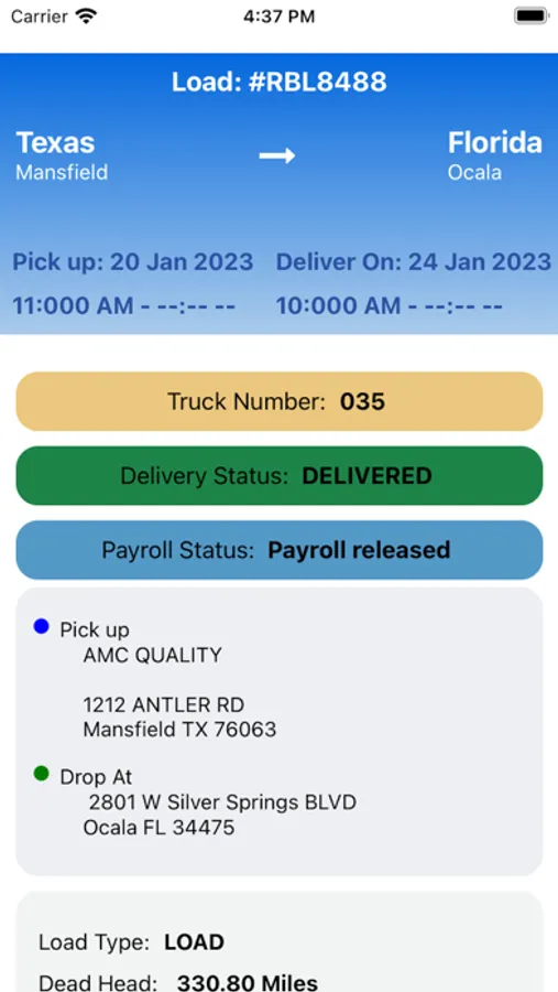 A RBL Driver management app is an application that helps trucking companies and fleet managers to track and manage their vehicles, drivers, and cargo. The app typically includes features such as electronic logging of hours of service and dispatching. This app helps the driver to identify their load and manage their payroll