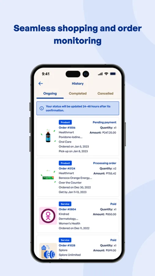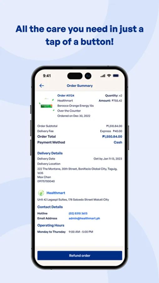 Shop from the comforts of your own home, and choose from delivery and pick-up options. Done shopping? Track and view the status of all your orders in the MetaCare app.