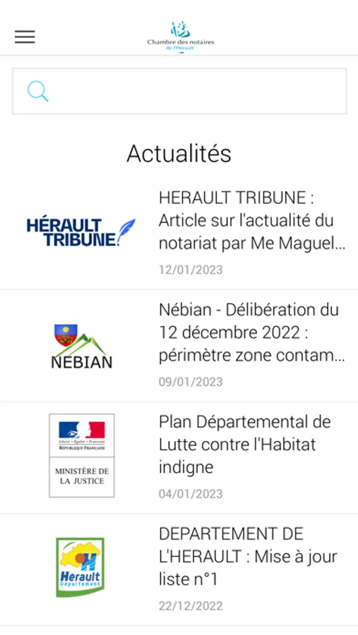 Cette application est destinée à centraliser et faciliter la diffusion des informations pratiques et professionnelles de la Compagnie des notaires de l’Hérault.