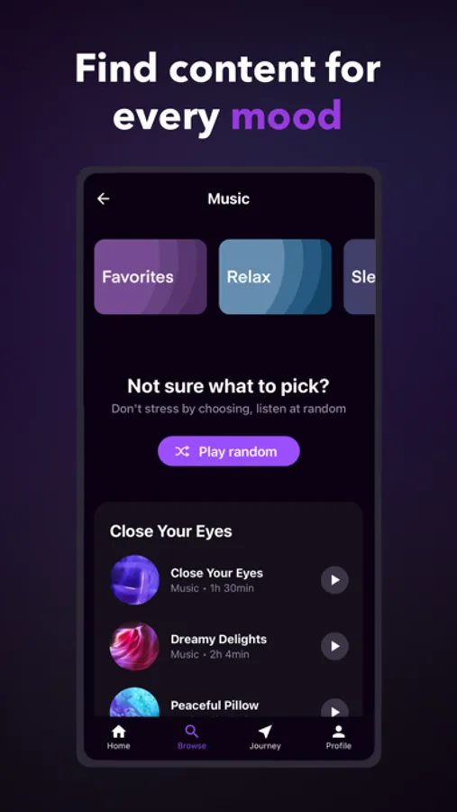 - A sleep section with meditations, sounds and music designed to help you fall asleep and sleep better