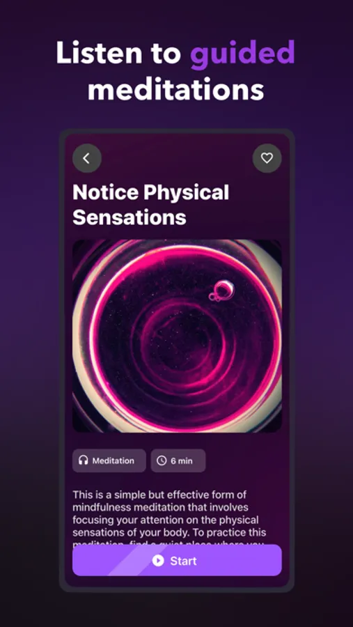 - Guided meditations on many different topics which will help you relax, focus and learn about yourself