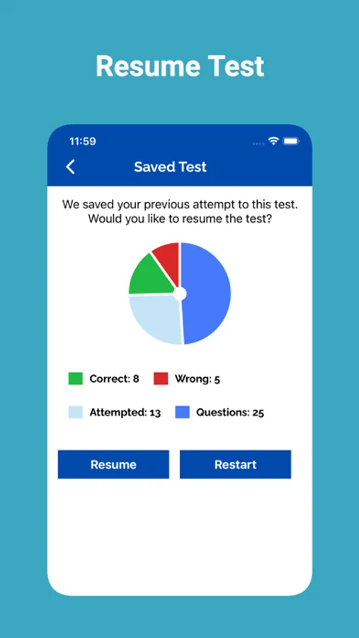 App tracks the users completed practice tests. The app tracks their progress, allowing them to identify areas for improvement and track their overall progress.