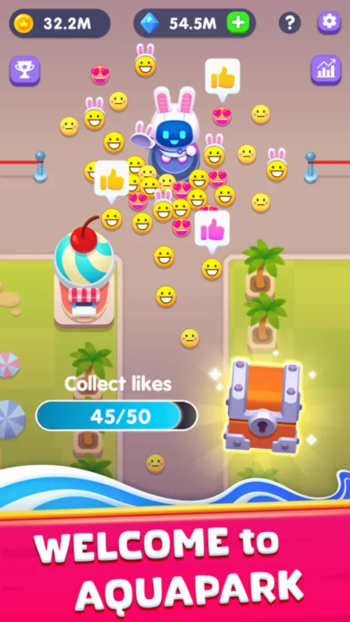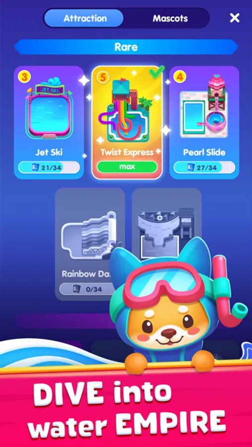 Start with a small aqua park, then upgrade and grow territory. Open new water entertainments for guests with different types of attractions. You also can find tons of café, shops with mascot accessories and other entertainments!