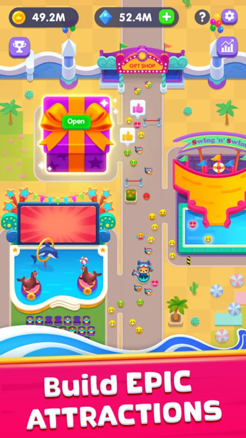 UPGRADE ATTRACTIONS - make your park the biggest and funnies one.