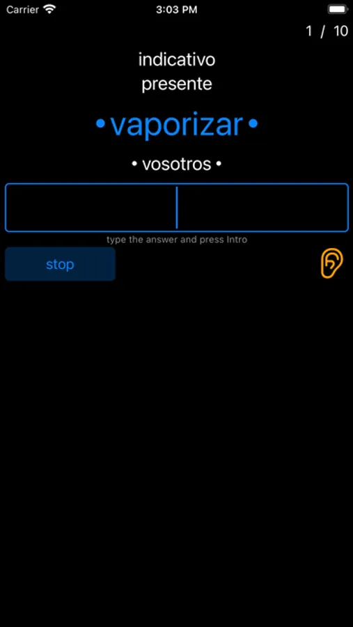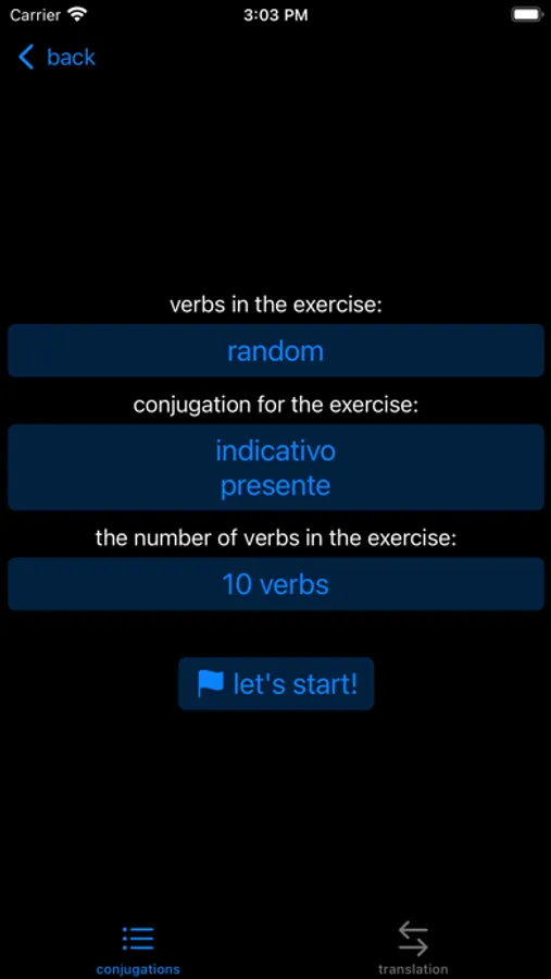 This is an app for learning and memorizing Spanish verbs - their forms and conjugations. You can find the verb you need by typing it in Spanish or the Russian or English translation. There is also an "exercise" mode - a set of verbs will be generated and you will need to enter it in the correct grammatical form. At the end of the task, a report is generated with errors that you can correct immediately.