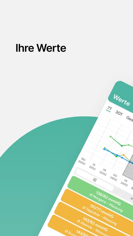 • Schnelle Kontrolle Ihrer gemessenen Werte (inkl. wöchentlicher Fortschritte und gemessener Wochen-Durchschnittswerte)
