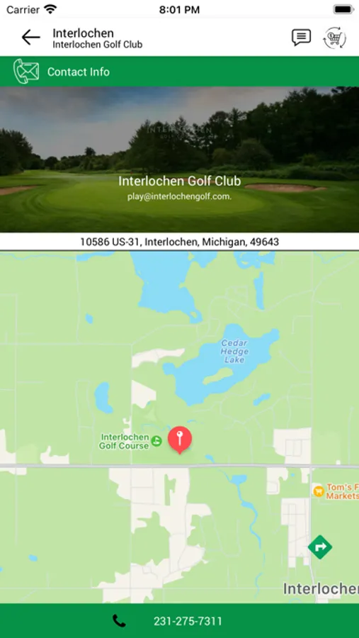 Interlochen Golf Club gives you access to an on-course rangefinder, live scoring system, course information, weather updates, tee-time booking service, and messaging systems functions. Additionally, the Interlochen Golf Club app may be used to sign up for events, view your membership portal, order food and beverage, and receive course promotions at Interlochen Golf Club.