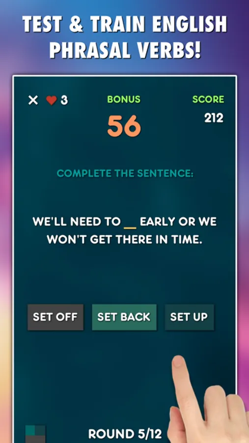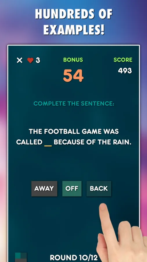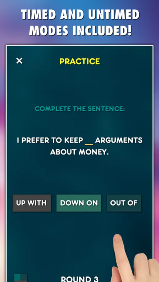 Phrasal Verbs Grammar Test contains timed and untimed game modes and hundreds of English examples!
