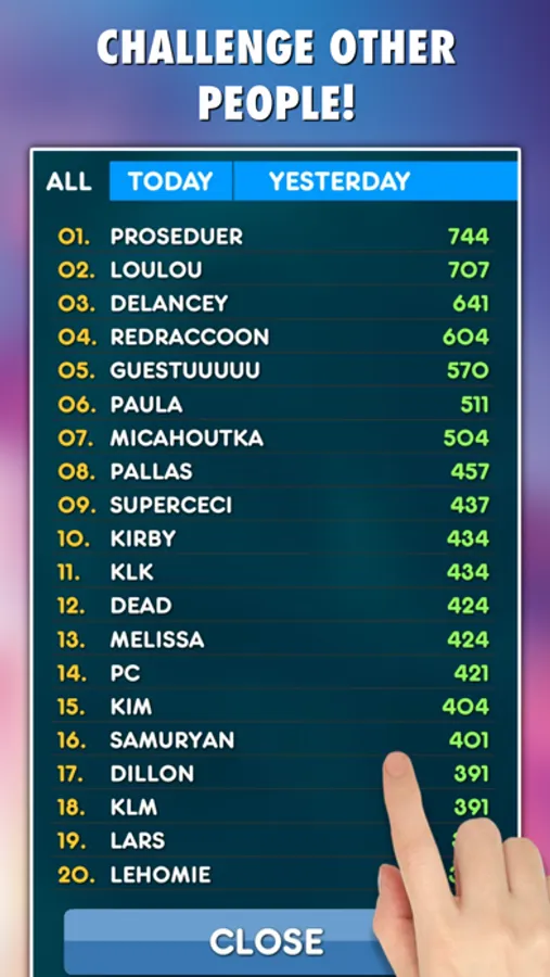 * TOP20 - challenge other people from all around the world and track your personal bests