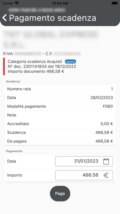 Permette di gestire in mobilità le scadenze e di effettuare i pagamenti dei tuoi documenti di vendita