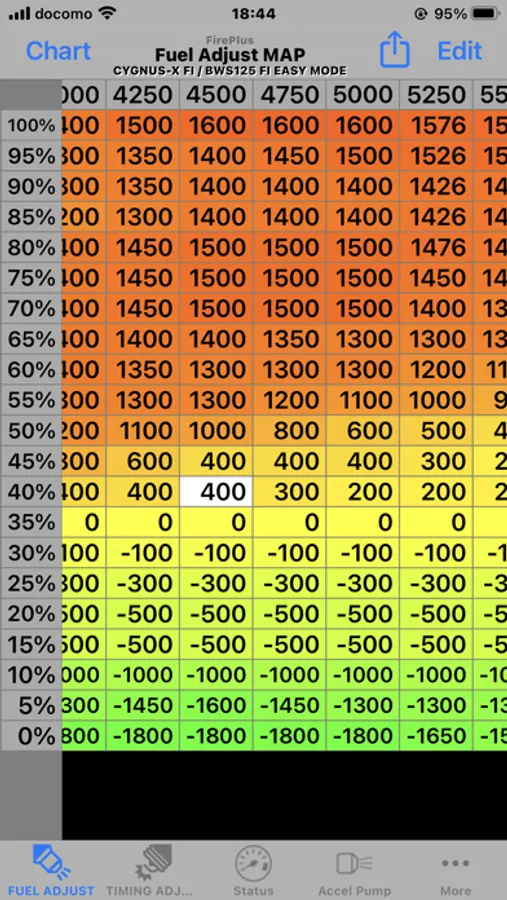 - The maximum 2500micro/-7500(ex.GROM JC61)micro seconds the engine rotation and throttle position for each fuel injection increase / decrease can edit and write-read.
