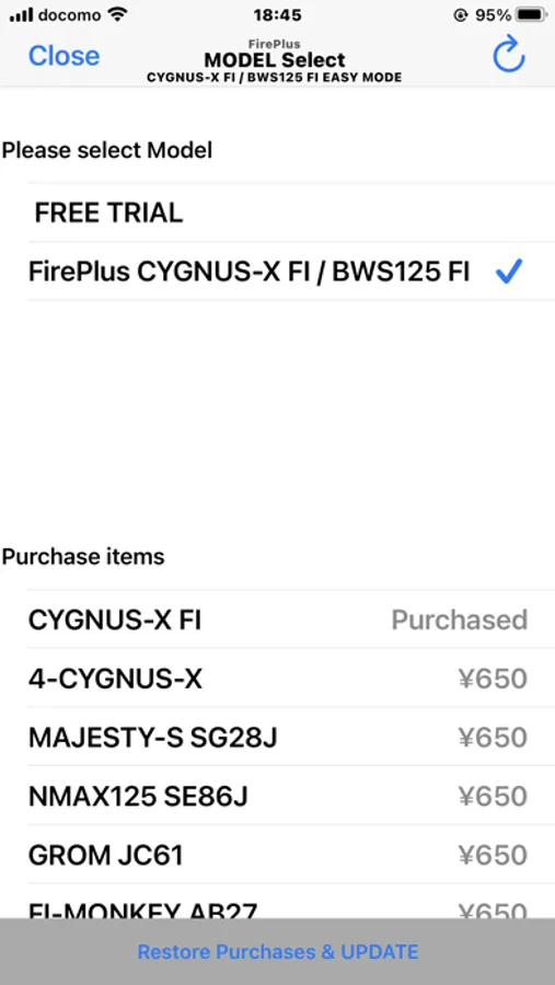 Although this App can be downloaded for free, only the screen of the tachometer is displayed free of charge. It is necessary to purchase download bike model that conforms to the model of the motorcycles.