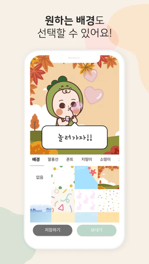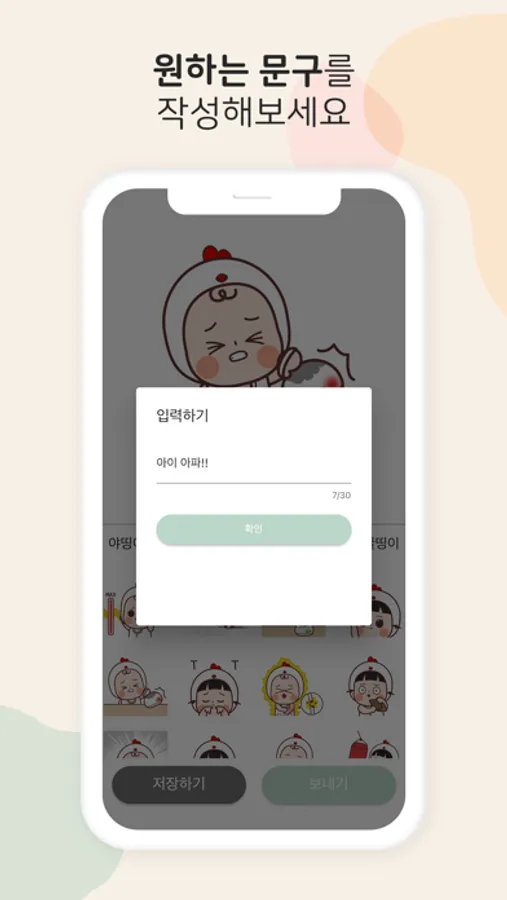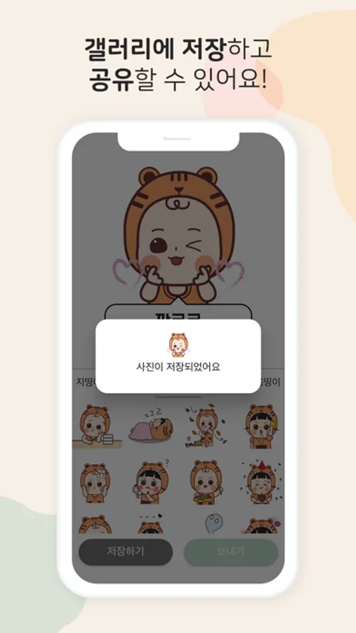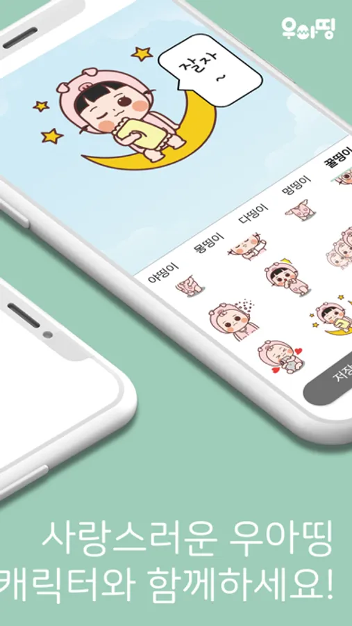 귀여운 열두띠동물 우아띵프렌즈 캐릭터를 활용해 문구와 함께 재밌는 이모티콘을 만들어보세요!